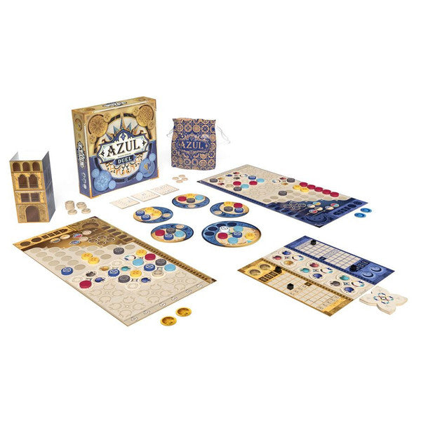 The tile-laying favorite is back in a duel version! Of all the tile-laying artists who have decorated the walls of King Manuel’s palace in Azul, two artists stood out. These two tile-laying masters have been chosen by his majesty to decorate the ceiling of Sintra’s palace. Players will have to show the king in a tile-laying duel, who is the best among the best artists of all Portugal !